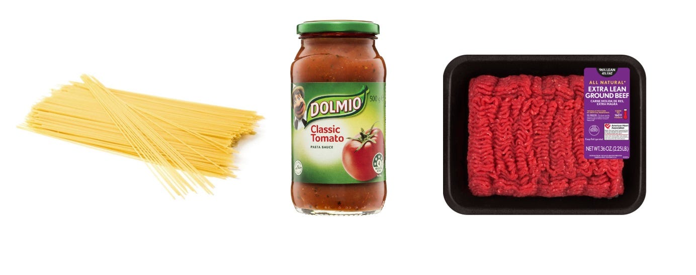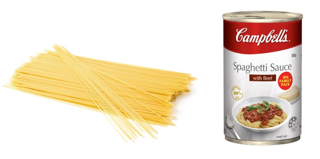LEVEL TWO: Dry spaghetti and tinned bolognese sauce