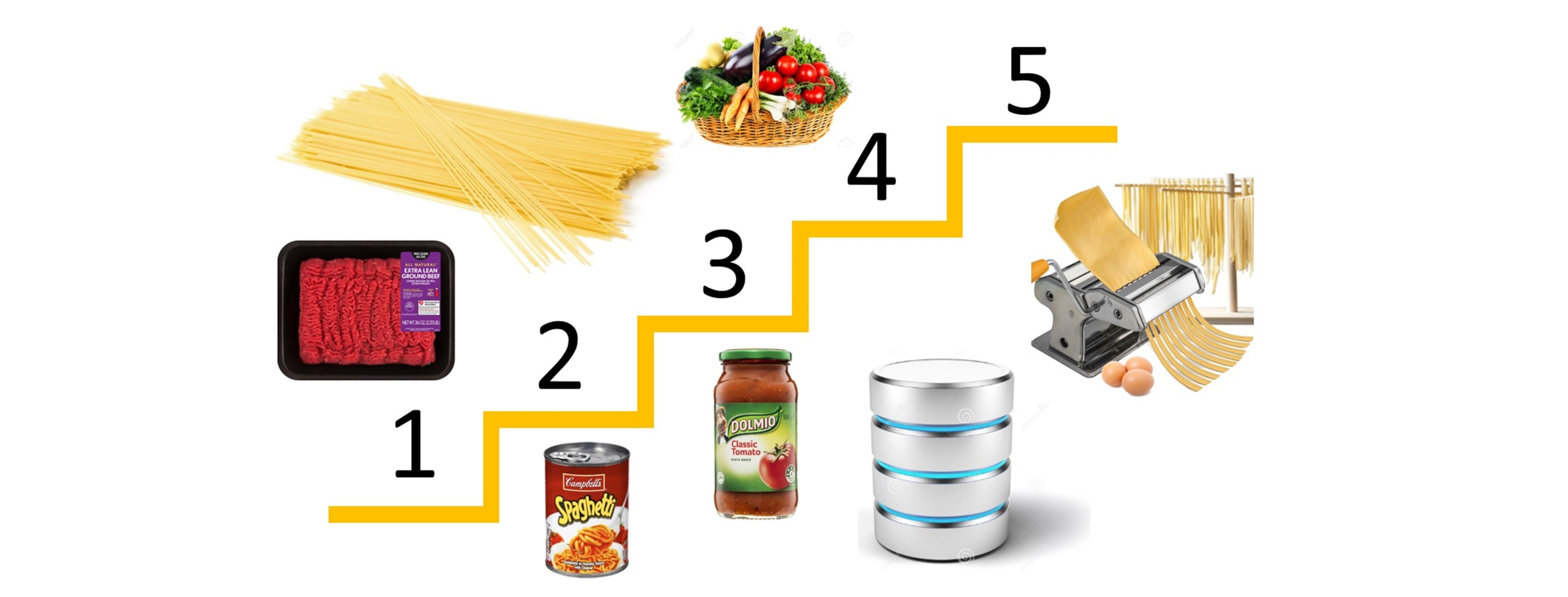 Let me give you a run-down on these 5 levels of spaghetti each divided into three parts. The first part simply describes making a spaghetti beef bolognese, you know, the one with the meat and tomato sauce. The second part describes how one might undertake how they generally do things in life as spaghetti goes. The third part describes a specific experience to me, in this case, creating a database for a project or series of projects. If the mere thought of reading up on databases is a fate worse than chewing off your hand, than skip those parts!