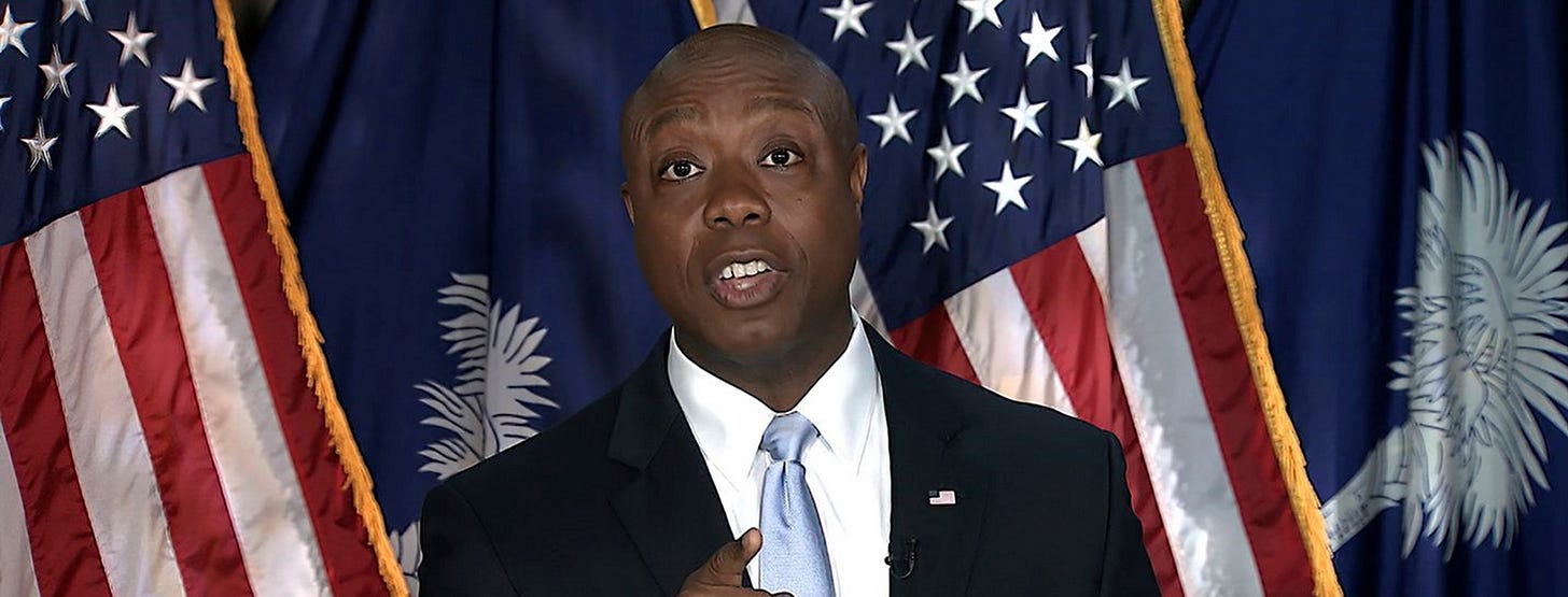 Picture above of Tim Scott’s eloquent and beautiful speech during April 2021.