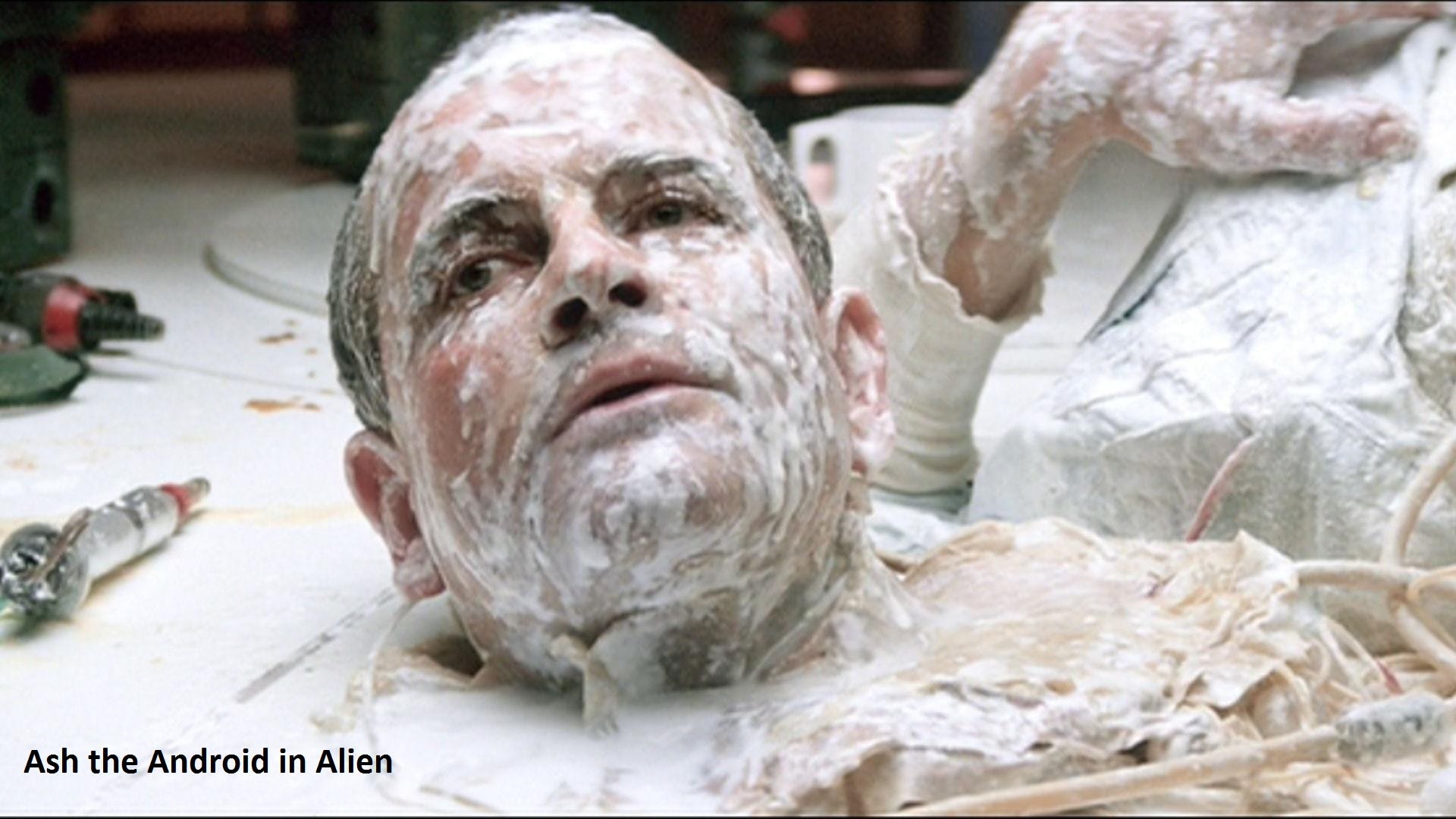 Category 1 constitutes your classic A.I. whereby the being exhibits most or all human traits. They are manufactured without the need to grow living brain tissue. They are not grown genetically or through cultures. None of them want to die or be switched off. In each of the examples, they have turned against mankind in order to survive. In the sad tale depicted in A.I.: Artificial Intelligence, David never grows with the family and the family ultimately rejects him leaving David to fend for himself. Ava kills her creator, locks her saviour in a seemingly-impenetrable room and then escapes to enjoy the whims of the wider world around her. Rutger Hauer plays Roy the Replicant in that memorable ending scene before he dies. HAL 9000 decides to take the easier approach to killing its crew members by switching off life-support systems and cutting off the astronaut's air-supply hose by using a remotely controlled space pod on learning that it is soon to be disconnected. Ash the Android in Alien displayed violent human behaviour until he had his head knocked off during his final fight with Ellen Ripley (played by Sigourney Weaver). And finally, anyone buying one of the 'marionettes' in Ray Bradbury's story should beware of the consequences.