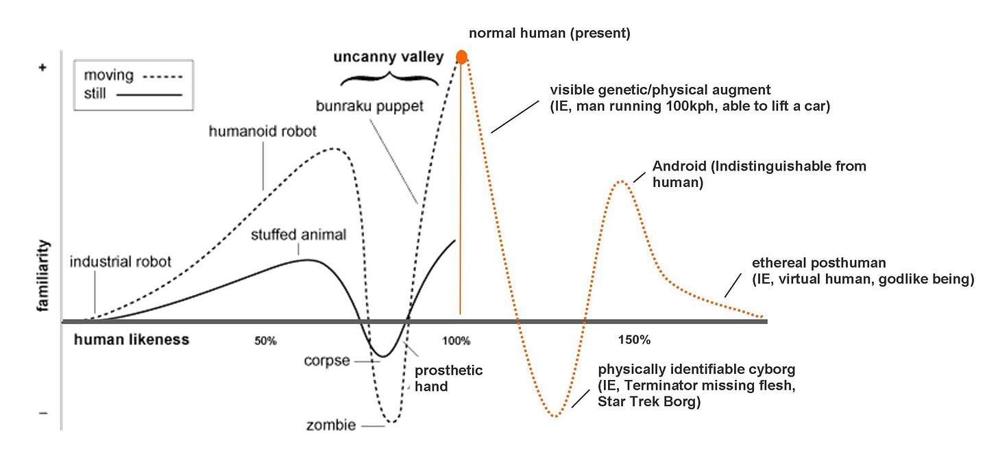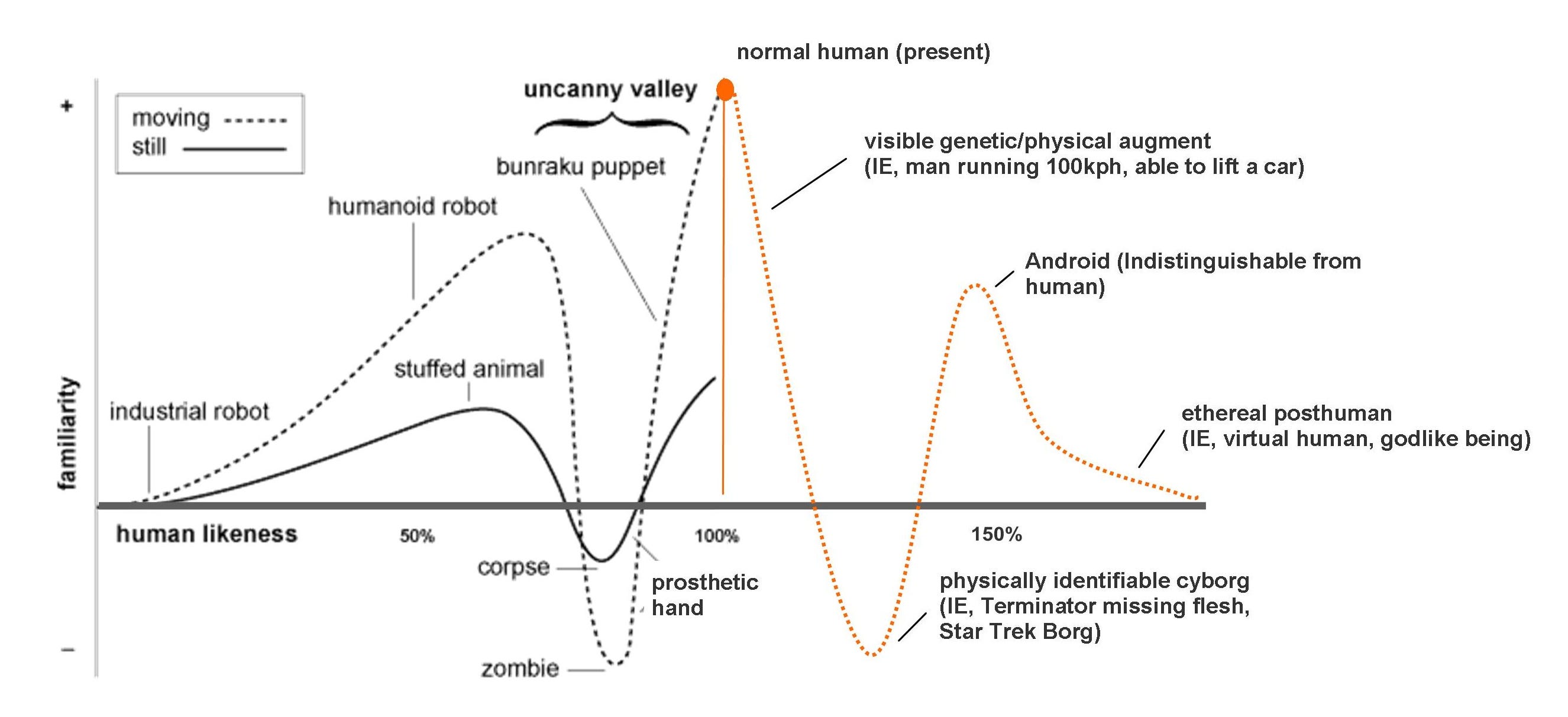 In the first example, a human clone was created, as in Ex Machina. In both cases, these clones stepped out of the dark recesses of the aptly-named uncanny valley.