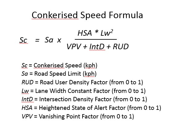 The volunteer’s task was to follow a prescribed route to a destination. For example, if that volunteer happened to reside in Shrewsbury, an obvious route of choice would be the A458 to Snowdonia National Park, a popular route, especially during the summer months. The volunteer’s sole ambition was to create the longest conker. A conker (as defined by the R&REC Code) is defined as a queue (or trail) of cars all following in succession at the optimum conkerised speed. Conkerised speed (as defined by the R&REC) is the optimum speed calculated to maximise the time to drive from point A to point B to ensure that the conker remains intact (i.e. no vehicles can safely overtake the head of the conker). This speed is highly variable and takes in to account such factors as VPV (vanishing point variability, or twistiness), Lw (lane width), (IntD) intersection density, (RUD) road user density, and HSA (heightened state of alertness factor or the Sunday Driver factor). HSA is largely dependent on the day of the week and time of day. For example, An HSA value of 0.1 would be normal for Sunday afternoons and an HSA value of 0.8 would be a normal value for a Tuesday morning.