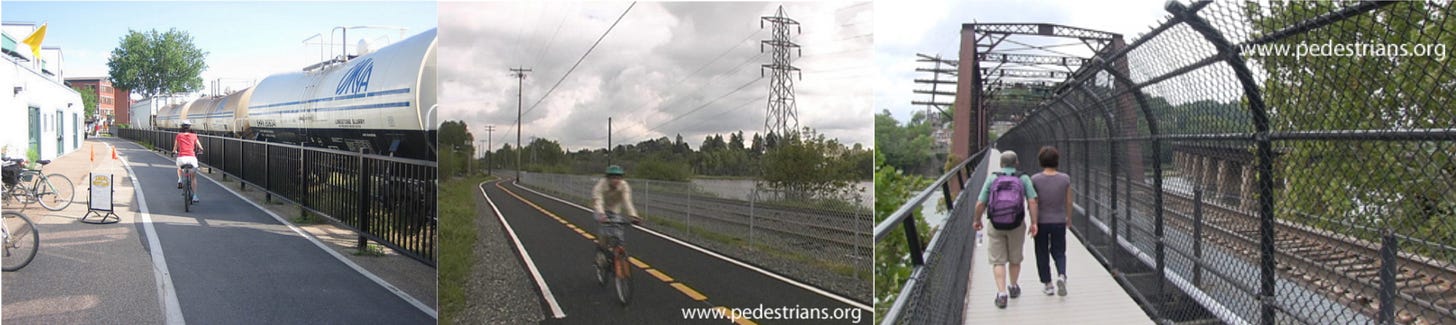 Here are a few examples of walkways and cycleways adjacent to active rail corridors.