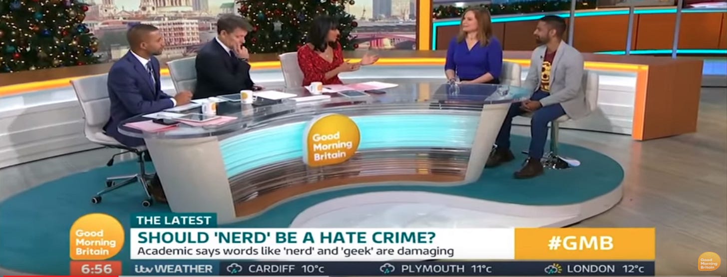 Sure, we had jokes back then as a child in my later years. In my time, for some odd reason or another that I can’t remember, it was the Polish community we made fun of; the Pollocks. During the same time in England, it was the Irish, so lovingly played out by the Fawlty Towers episode when the Irish builder stuffed up a job and being unceremoniously ousted by Basil’s wife, Sybil, ‘You’re nothing but a thick Irish joke! Now get out!’ And let’s not forget the Germans! But this is the thing. Nearly every group of people will get a thorough ribbing at some point or another, but now, the blade of wokeness is intending to stop all that. Earlier this month, a Dr Sonja Falck was interviewed on Good Morning Britain on the proposal to making it a hate crime to call someone a nerd. What nonsense is this! Here’s the link.