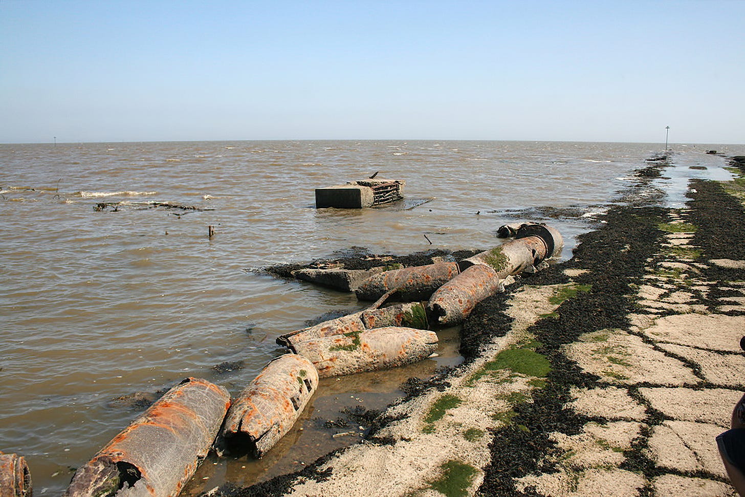 One of the strangest sights from the waters are the remnants of rusty towers and partly sunken barges, shipwrecks, and lonely ephemeral mud islands, only to disappear at a moment’s notice with the shifting tides. Strange and secluded old farmhouses situated in the weirdest of places. One wonders who lives there, and what it’s like inside. Perhaps an old grandfather clock ticking solemnly inside an otherwise silent house while a mournful crow caws outside in the early morning mist Out across the water on clear days, the illusion of distance is distorted when far-away tankers on the horizon touch over the shimmering air hanging over the mud flats between. Walking along the ancient worn-out seawalls is also interesting if one is interested in old disused structures and abodes. Disused buildings and bunkers, creaky rusty old antennas from the War, old signposts, abandoned cabins, and non-descript chunks of concrete half-submerged in the pungent marshes.